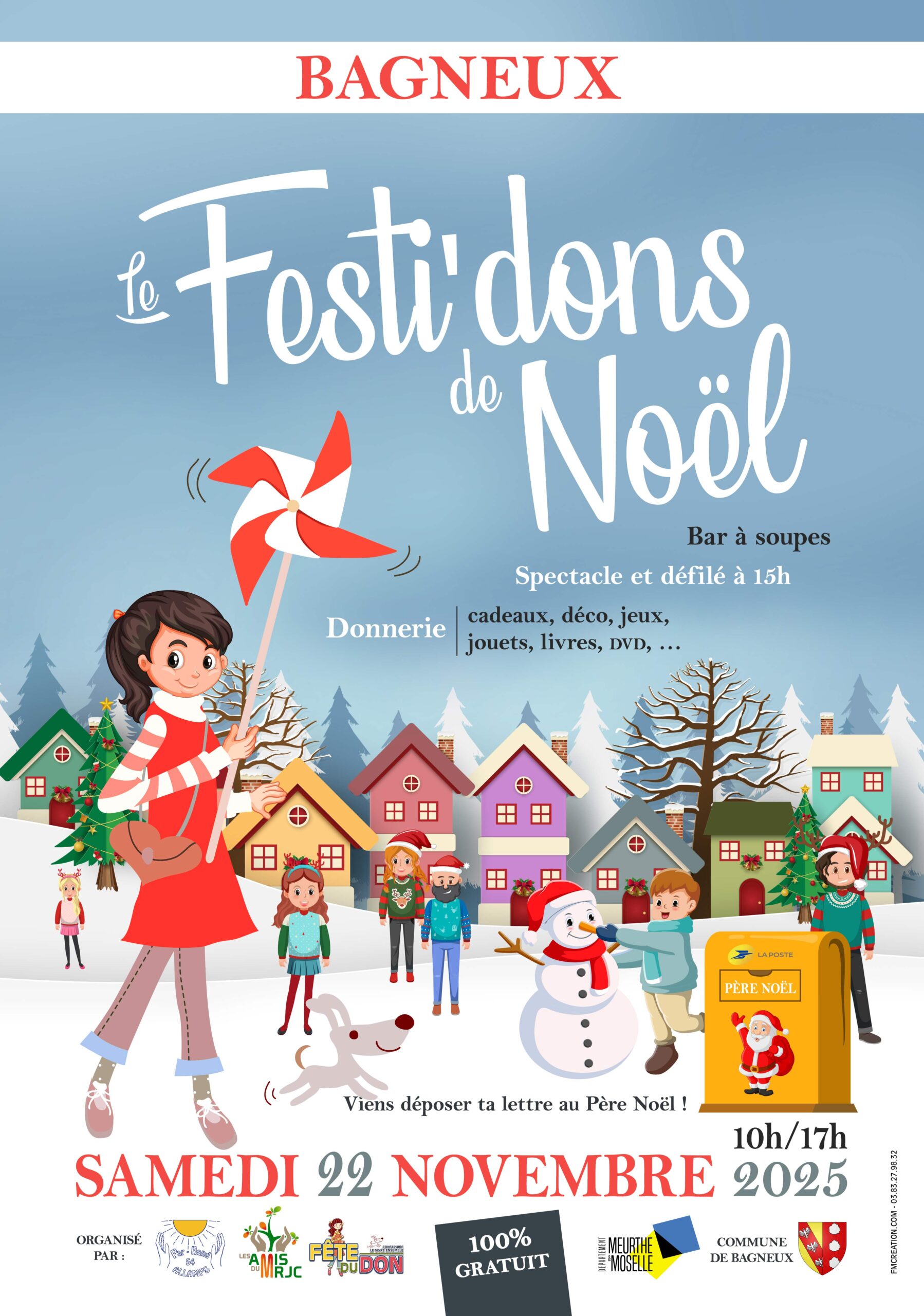 Pour ce 8ème FESTI’DONS, à l’approche des fêtes de fin d’année, 3 structures, qui ont pour point commun le DON, se mobilisent pour offrir du bonheur et de la joie à tous, petits et grands, gâtés ou pas gâtés, jeunes et moins jeunes :